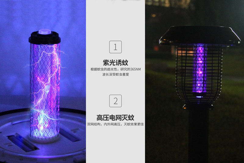 太陽能滅蚊燈工作原理-紫光誘蚊