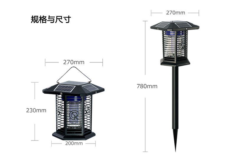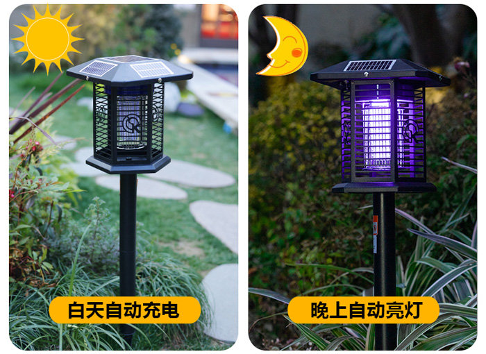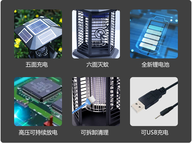 3、五面太陽能板,充電更快。六面誘蚊電網,面積更廣。